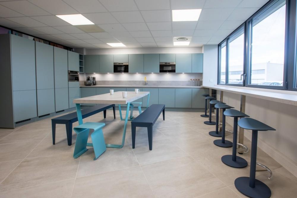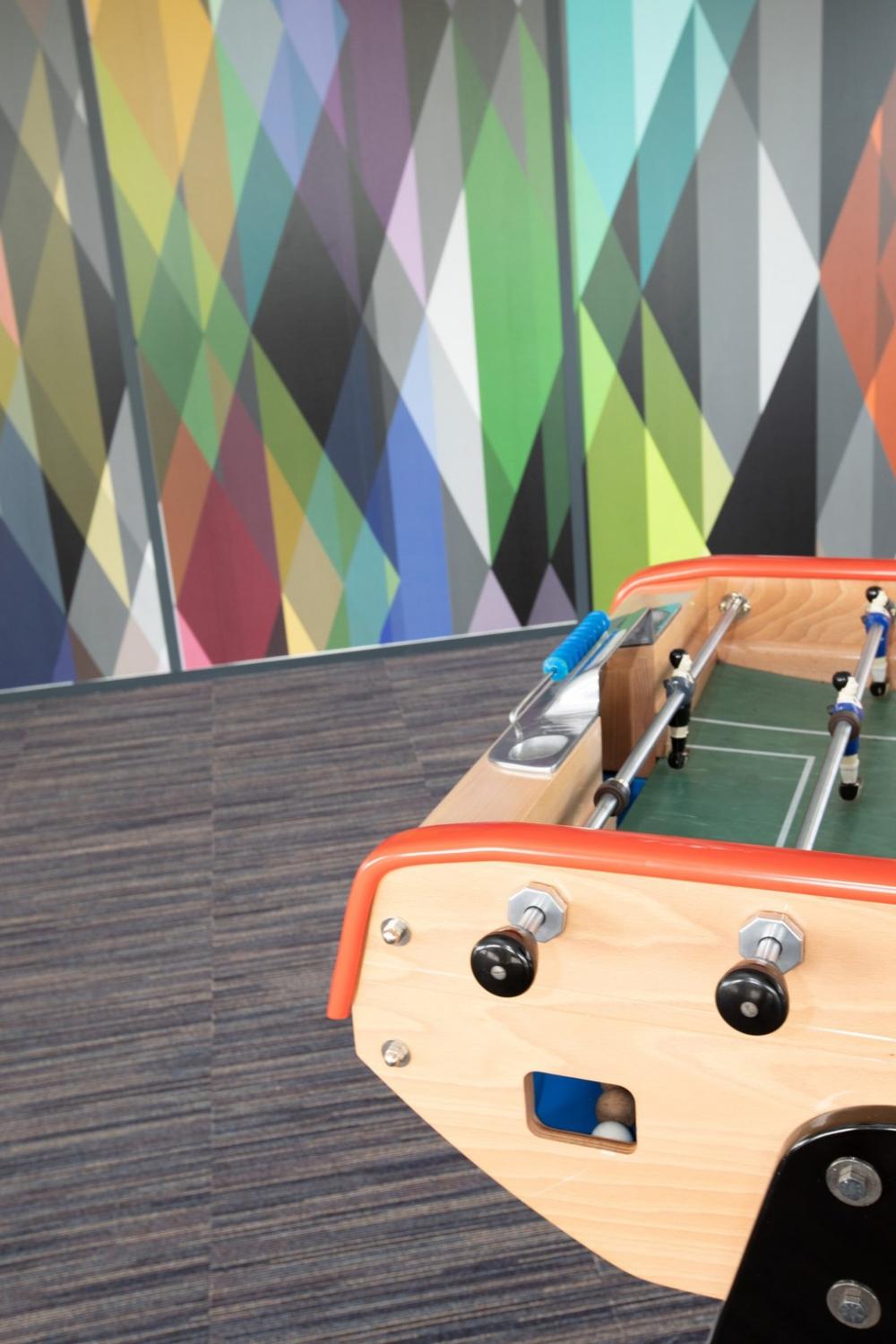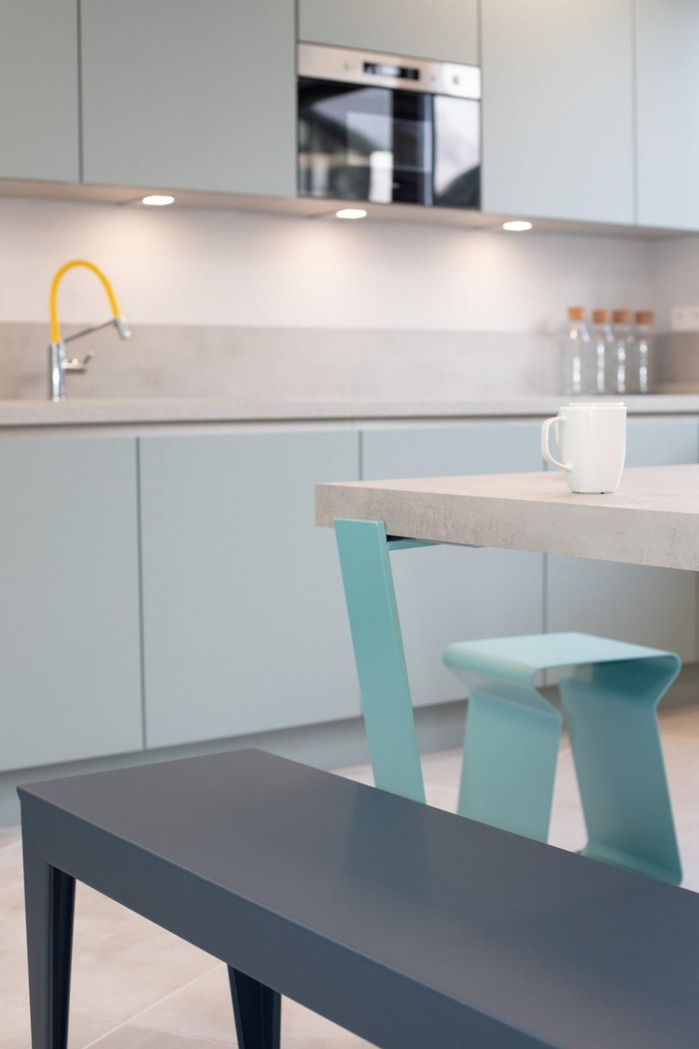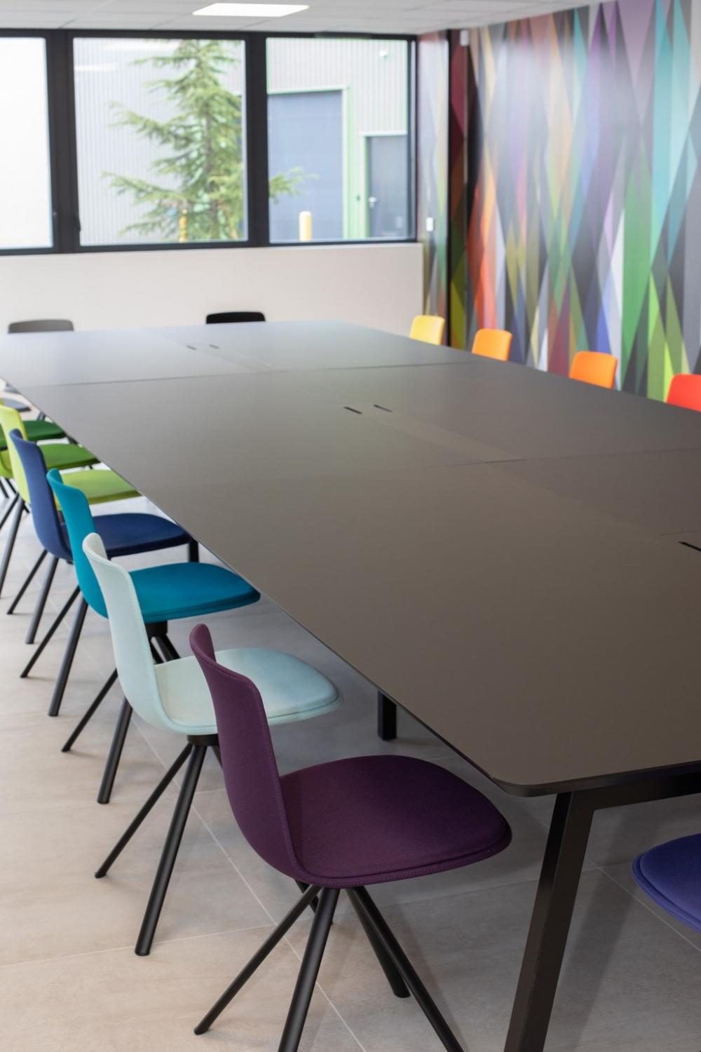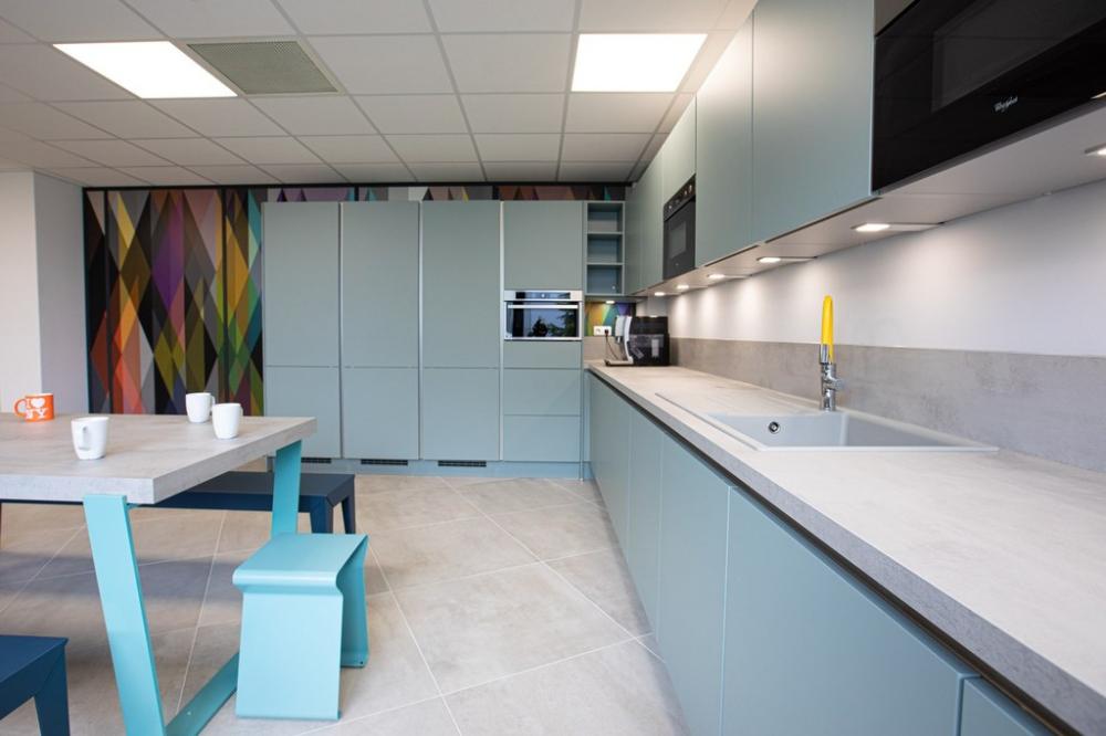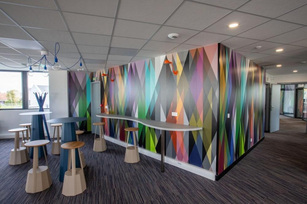 Nous nous sommes ensuite occupés de créer une ambiance colorée et ludique, propice à travailler dans la bonne humeur, avec un mobilier aux couleurs douces et acidulées. Aucun détail n’a été laissé au hasard pour que notre client bénéficie d’une ambiance différenciatrice et originale, vecteur d’une identité dynamique.