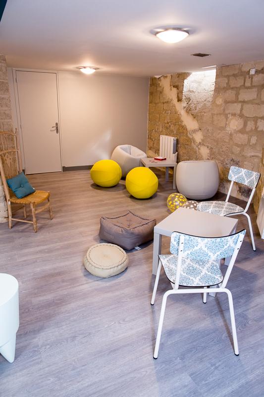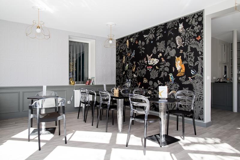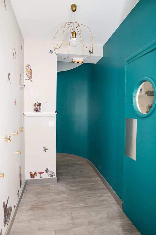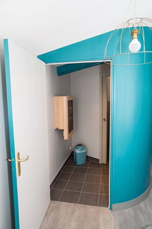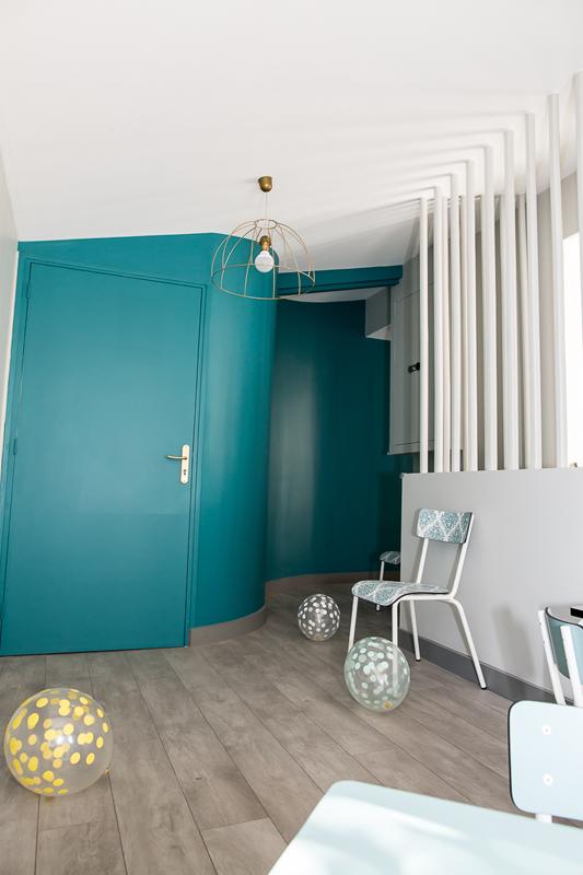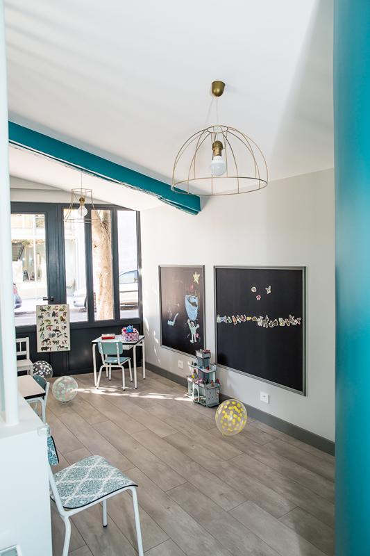 Notre agence d'architecture d'intérieur a été missionnée pour accompagner sa cliente à faire de cet ancien local commercial dédié à la vente de matériel médical un salon de thé ludique et familial. Idéalement situé et réparti sur deux niveaux, cet espace avait la configuration optimale pour y agencer un salon de thé et son pôle d’activités pour enfants au rez-de-chaussée. Le sous-sol accueille un espace plus cosy ainsi que les espaces techniques. Définition de l’ambiance et de la scénographie, recherche des matériaux, du mobilier et des luminaires, conception d'un meuble sur mesure, présentation d’artisans et accompagnement de notre client pendant toute la durée des travaux : une prestation complète réalisée par Nuance d’intérieur.
