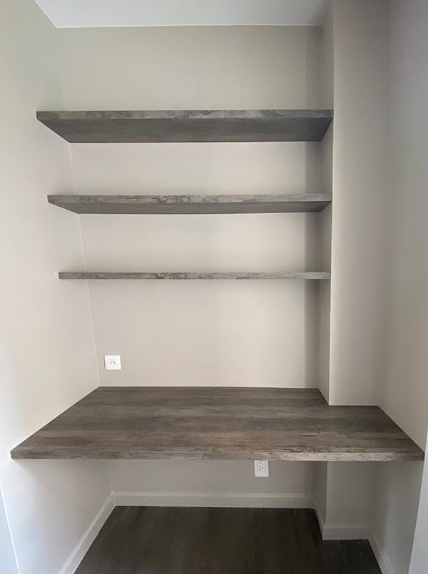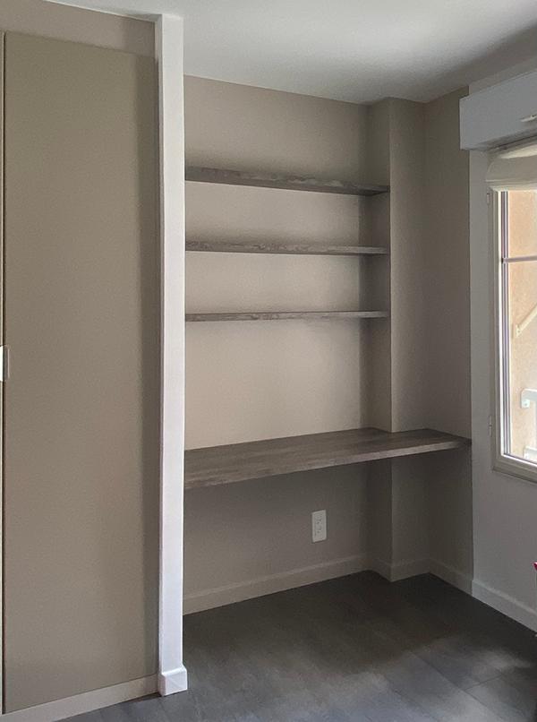 - Prestations effectuées : conception d'un bureau sur mesure, projet de rénovation, définition d'une ambiance, suivi de travaux