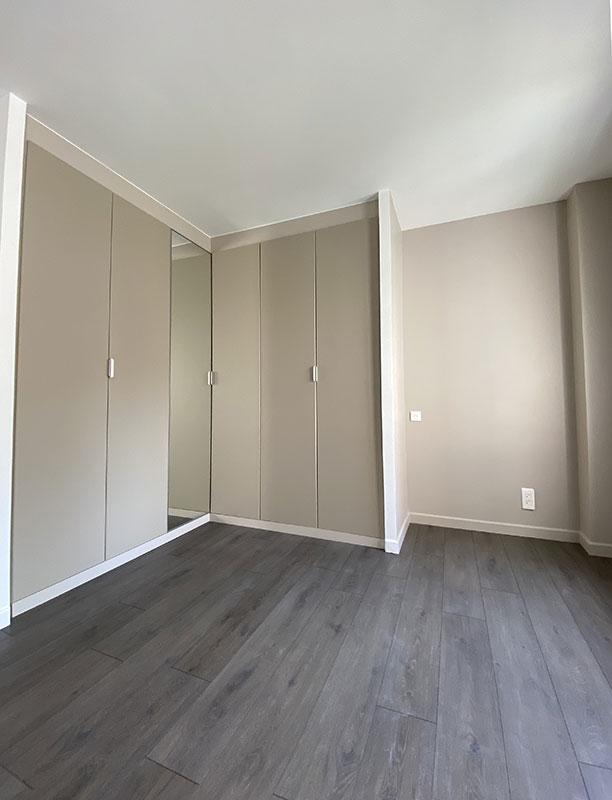 Pour faire suite au départ des enfants de nos clients, nous avons réunis leurs deux chambres pour créer une grande suite parentale équipée d’un dressing et d’un bureau réalisé sur mesure.