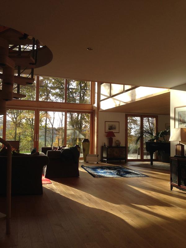 Nuance d’intérieur a accompagné les propriétaires de cette maison d’architecte en bois aux volumes généreux tout au long de sa réalisation. La décoration et l’agencement ont été réalisés dans le respect de leurs gouts et leurs passions, à partir de certains meubles qu’ils ont souhaité conserver de leur ancienne habitation. Notre proposition a consisté à associer harmonieusement meubles anciens et mobiliers nouveaux.